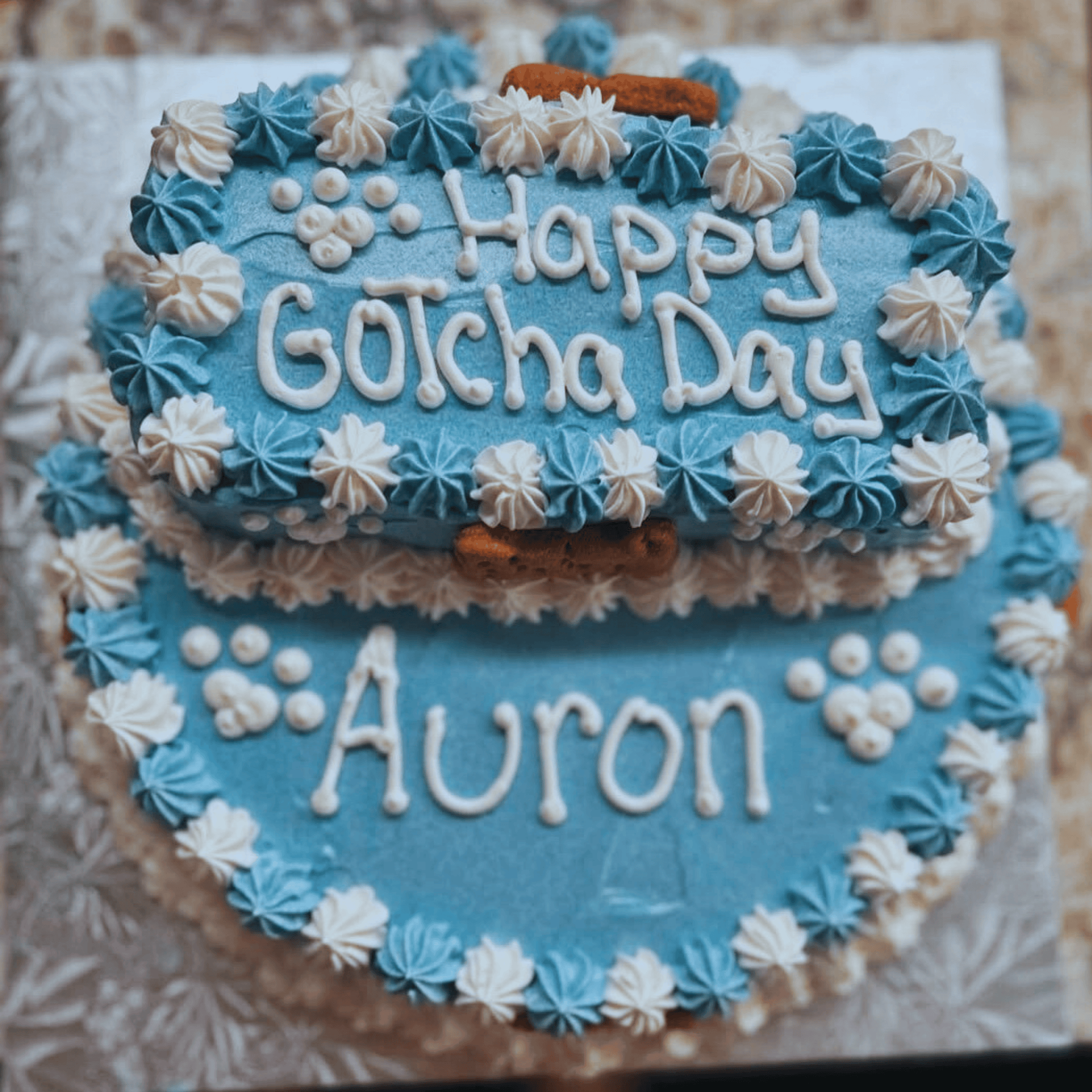 Amber's Barkery 2-Tier Birthday Cake is made up of a 9 inch Round Cake and topped with a 7 Inch Bone cake customized to your choice of icing colours and flavour.